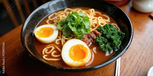 A Hearty Bowl Of Ramen With Rich Broth, Soft-Boiled Egg, And Noodles