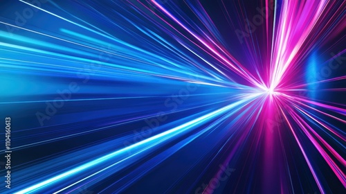 A high-energy abstract design featuring bold streaks of neon blue and purple forming sharp, jagged patterns. The glowing lines radiate outward from a central point, creating a dramatic and futuristic