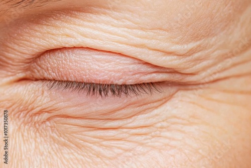 A high-resolution image of a woman applying anti-aging cream to her forehead to reduce wrinkles, with a neutral soft-textured background that emphasizes her face and skincare.