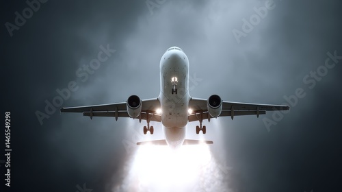 A high-tech aircraft rises victoriously through dark, stormy clouds, illuminated by glowing trails that emphasize its swift vertical ascent against a dramatic sky