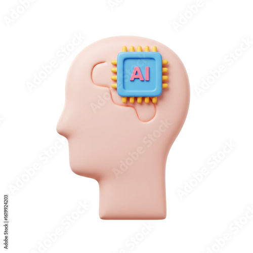A icon of a human head with an artificial intelligence microprocessor chip embedded in the brain area.