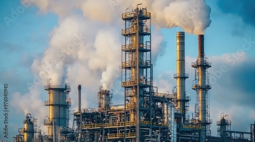 A large industrial factory releasing thick smoke into the atmosphere, highlighting air pollution, environmental impact, and industrial emissions.