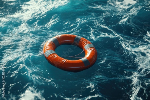 A life preserver floats in the middle of the ocean, awaiting rescue