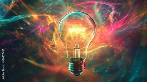 A light bulb surrounded by colorful, swirling energy, symbolizing dynamic and creative ideas in business