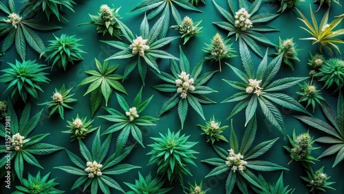 A Lush Arrangement of Cannabis Sativa Plants in Vibrant Green Tones, Showcasing the Intricate Details of the Leaves and Buds, Creating a Striking Visual Representation of Natural Beauty