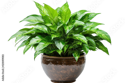 a lush green potted plant with vibrant leaves. showcasing a healthy and thriving appearance the plant is placed in a decorative brown pot. emphasizing its natural beauty and suitability for indoor dec