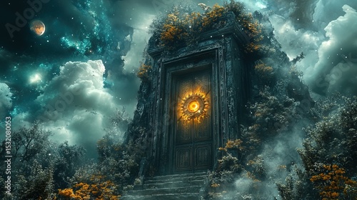 A magical elevator made of crystal and floating gears, transporting wizards to hidden realms