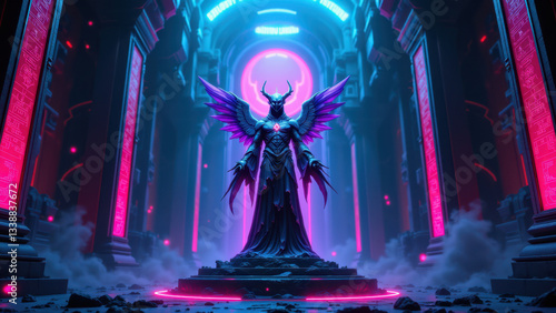 A majestic guardian stands at the center of a futuristic cybersecurity chamber, ready to protect against digital threats.