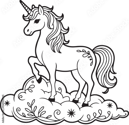 A majestic unicorn standing gracefully atop a whimsical cloud with decorative elements