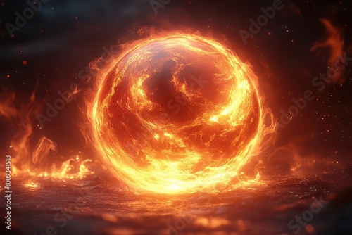 a mesmerizing ball of fire hovers in darkness its flames casting a warm glow and illuminating the surrounding shadows creating a dramatic and captivating scene