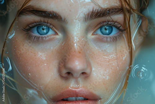 A mesmerizing closeup of a woman's face, with every delicate eyelash, flawless skin, and perfectly arched eyebrow drawing you in to the depth of her piercing eyes