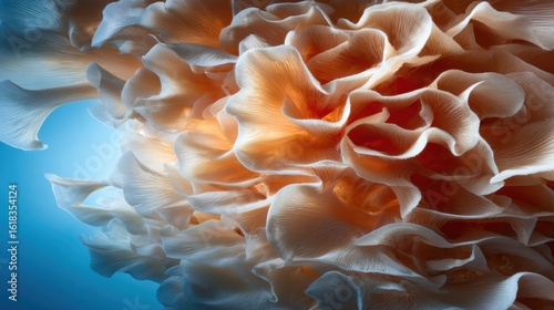 A mesmerizing close-up of flowing, organic textures with shades of peach and white, evoking feelings of softness and fluidity through intricate forms and light play.