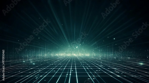 A mesmerizing digital landscape with radiant lines and glimmers, creating an ethereal atmosphere of depth and tranquility.