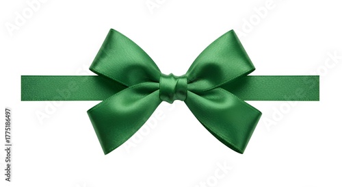 A meticulously tied, vibrant green ribbon bow conveys elegance on a seamless backdrop.
