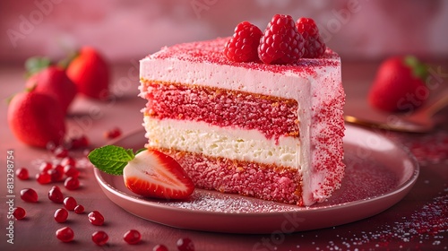 a minimalist and modern cake, side view, bakery, celebration, raspberry cake