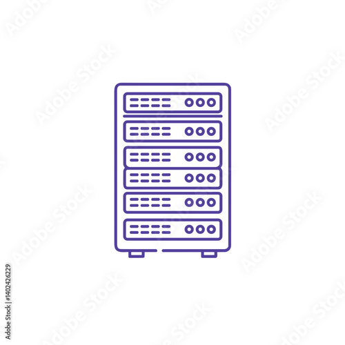 A minimalistic line art icon of a server rack, styled as a simple interface icon.
