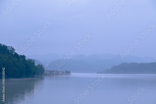 A misty Chinese lake
