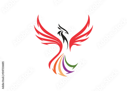 A modern and minimalist phoenix or bird logo with an elegant, flowing design.