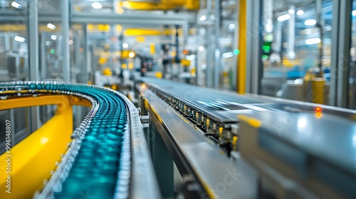 A modern assembly line in an electronics plant manufacturing smartphones, highlighting the precision and efficiency of the smartphone production process and high-tech manufacturing methods.
