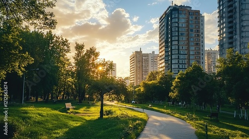 A modern city park in the center of the city, extracted from an apartment complex.