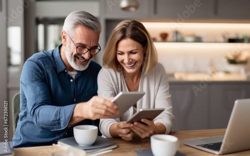 A modern couple shares a cozy moment at home, sitting together and using a laptop, embracing the digital age