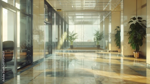 A modern lobby with a single plant in the center, providing a touch of greenery to the space