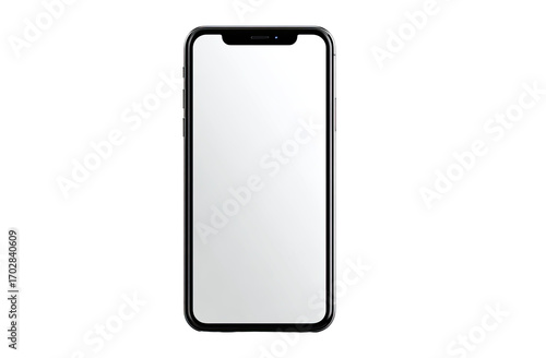 A modern smartphone with a blank screen, angled for view. Clean lines and a simple design