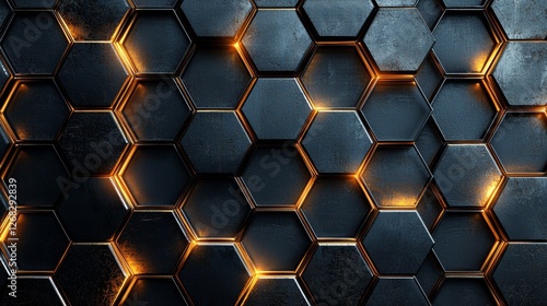 A modern, textured hexagonal pattern with glowing edges creates a sleek, futuristic look.