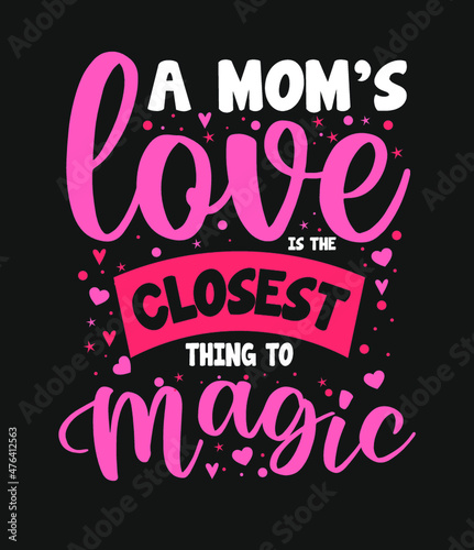 A mom's love is the closest thing to magic typography mother's day lettering t shirt design quotes slogan for t shirt and merchandise