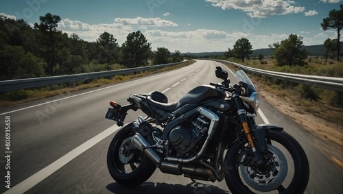 A motorcycle speeding on a highway