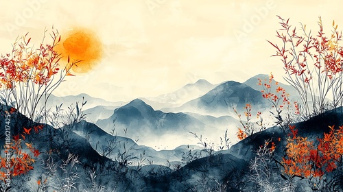 A mountain sunset paints the sky with light, a beautiful view across the landscape