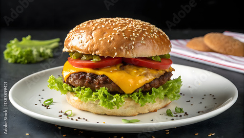 A mouthwatering bacon cheeseburger with a soft, lightly toasted bun. The burger features a thick.