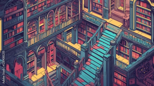 A Multilevel Library With Intricate Architecture and Bookshelves