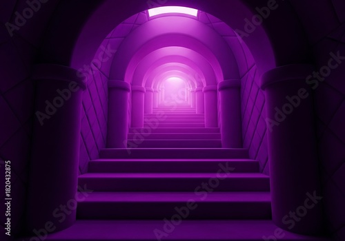 A mysterious purple glowing tunnel with stairs leading upwards