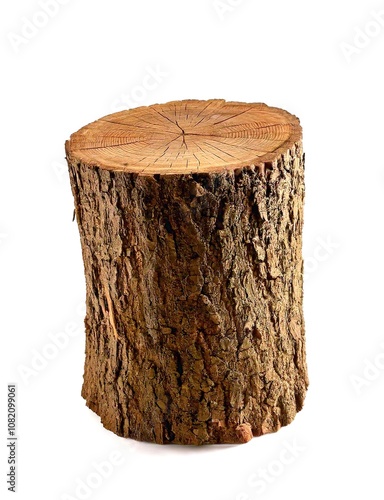A natural wooden stump showcasing its unique textures and rings from tree growth.
