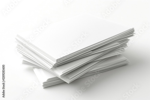 A neat stack of blank white paper sheets against a clean background, ideal for various creative projects.