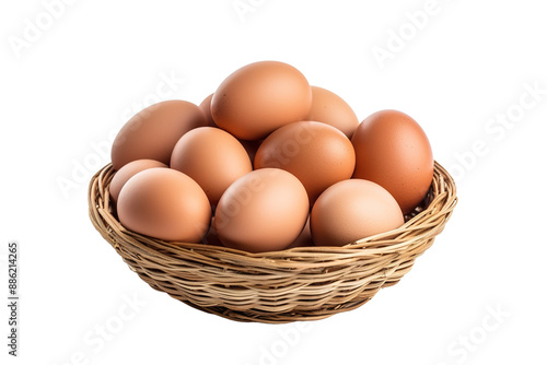 A Nest of Brown Eggs in a Woven Basket on a White or Clear Surface PNG Transparent Background.