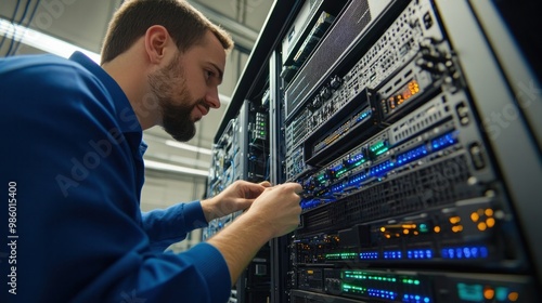 A network administrator implementing security protocols, configuring firewalls and intrusion detection systems,