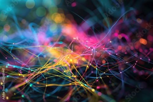 A neural network visualized with colorful lines and dots, AI generated