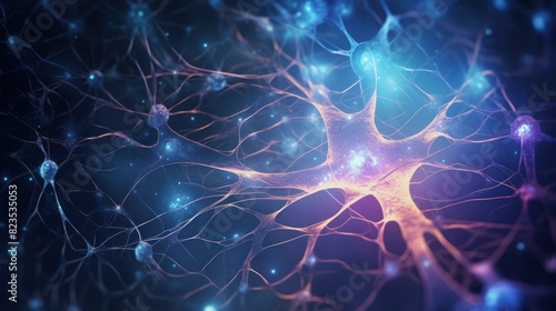 a neuron cell with its intricate dendrites and axon, captured in stunning detail