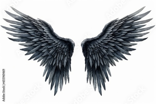 A pair of wings, like from a bird or angel, in a neat grunge artistic illustration style. Generative AI.