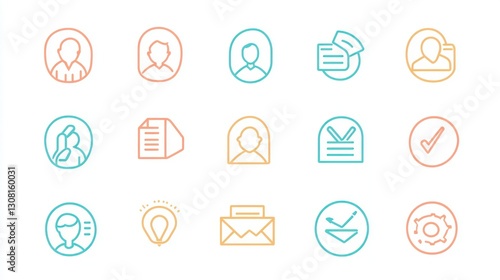 A pastel-colored thin-line icon set, adding a soft and approachable look to business visuals.