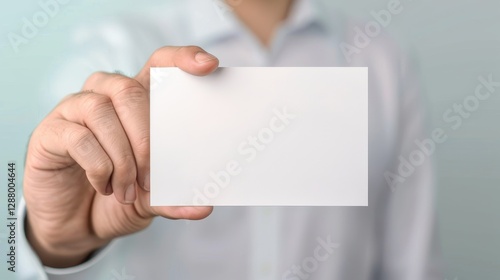 A person holds a blank white card, emphasizing its emptiness and potential for branding or messaging in a professional setting.