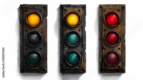 A photo of a traffic light, traffic, signal, stoplight, intersection, red, green, yellow, road, safety, transportation. Stonelight. Illustration