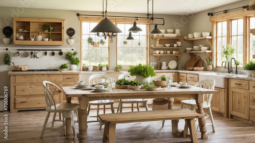 a photo showcasing your farmhouse kitchen table as the heart of your home highlight the warmth, comfort, and togetherness that the table brings to your family