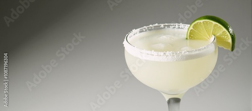 A photorealistic portrait featuring a luminous margarita with salt on its rim