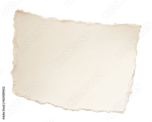 A piece of torn, textured beige paper with rough edges on transparent background.
