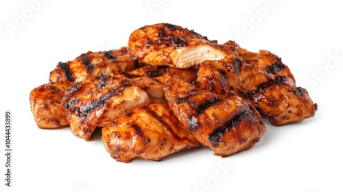 A pile of grilled chicken pieces with a smoky glaze, ideal for meals or barbecues.