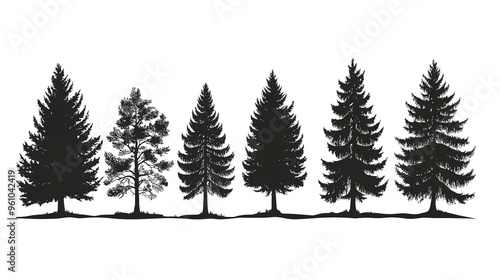 A Pine tree silhouette. Evergreen forest firs and spruces black shapes. Vector illustration of woodland tree set on a white background design.