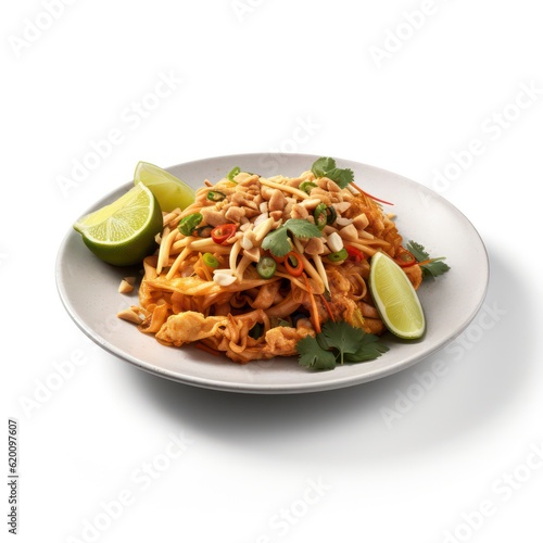 a plate of pad thai on white background for food photography generative ai